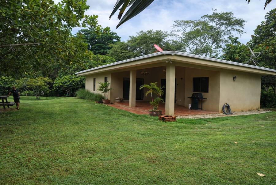La casa mide 150 m2 en un espacioso terreno que cuenta con algunos arboles frutales y otros.