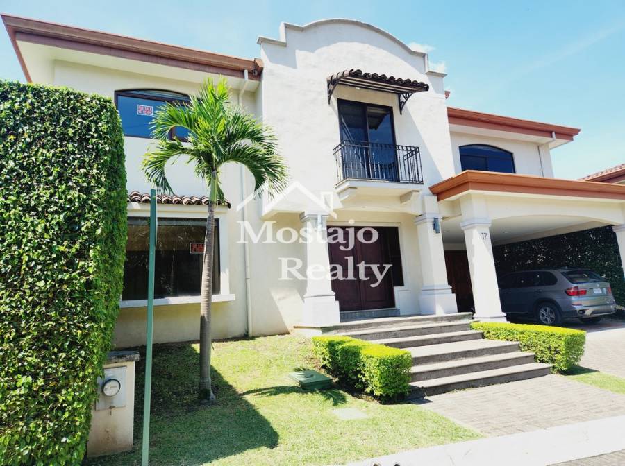 Venta de casa esquinera, Condominio Via Nova en pozos Santa Ana. La casa por ser esquinera es muy iluminada, con bastante jardin en forma de L, casa separada, no pega con otras casas, el condominio esta ubicado por el hospital metropolitano, clinica biblica, centros comerciales, etc.