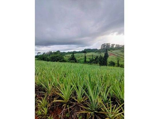DESCRIPCIÓN DETALLADA: finca agrícola de alta productividad. Cuenta con 88 hectáreas de terreno, de las cuales 57 se encuentran en plena producción de piña de calidad de exportación y 31 hectáreas de bosque primario que aportan riqueza ecológica, biodiversidad y equilibrio natural al entorno. Su ubicación estratégica, con acceso directo desde calle pública y condición esquinera, permite una logística fluida y eficiente. La finca es fácilmente accesible desde dos rutas principales: Sarapiquí y Ciudad Quesada. En cuanto a infraestructura, la propiedad está completamente equipada para el desarrollo de actividades agrícolas a mediana y gran escala. Cuenta con vivienda para el personal operativo, áreas de almacenamiento, facilidades para el manejo y aplicación de insumos, suministro eléctrico estable y fuente hídrica propia. La presencia de la quebrada Ceiba y un pozo de 80 metros garantizan el abastecimiento de agua.
