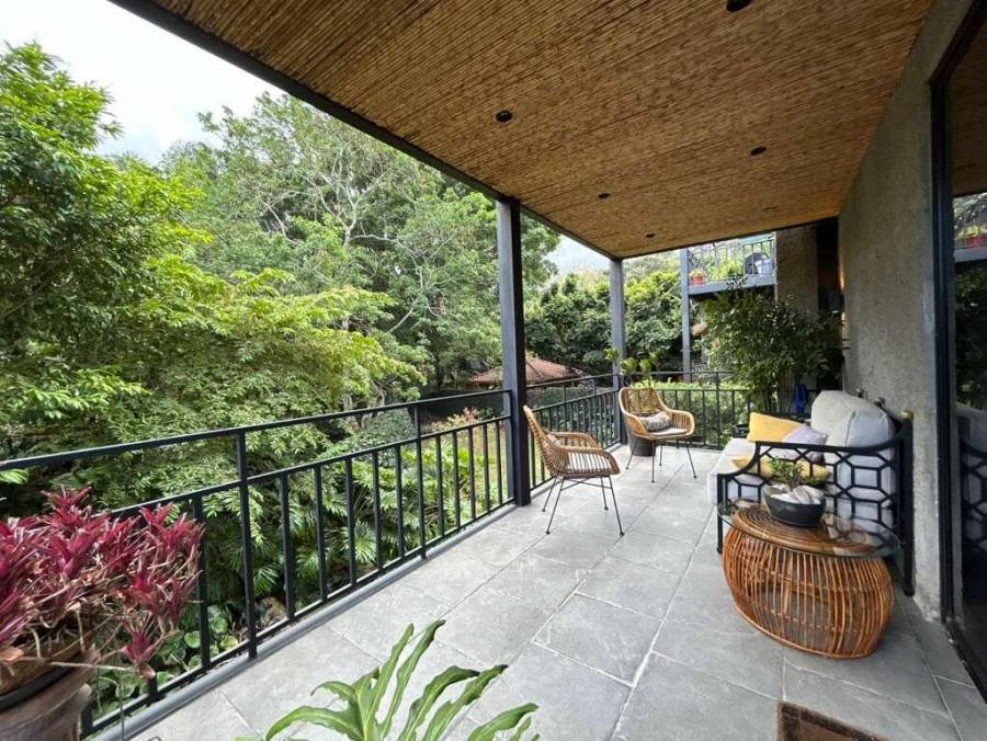 Exclusivo apartamento en un condominio intimo, en donde la vida transcurre al ritmo del caudal del rio y la brisa de los arboles que la flanquean, abstrayendola de la ciudad que a pocos pasos lleva otro compas. Es un apartamento tipo casa, con amplios espacios internos y aun mas amplia terraza cubierta que invita a la contemplacion del verde esplendor de la naturaleza. Un estudio puede servir